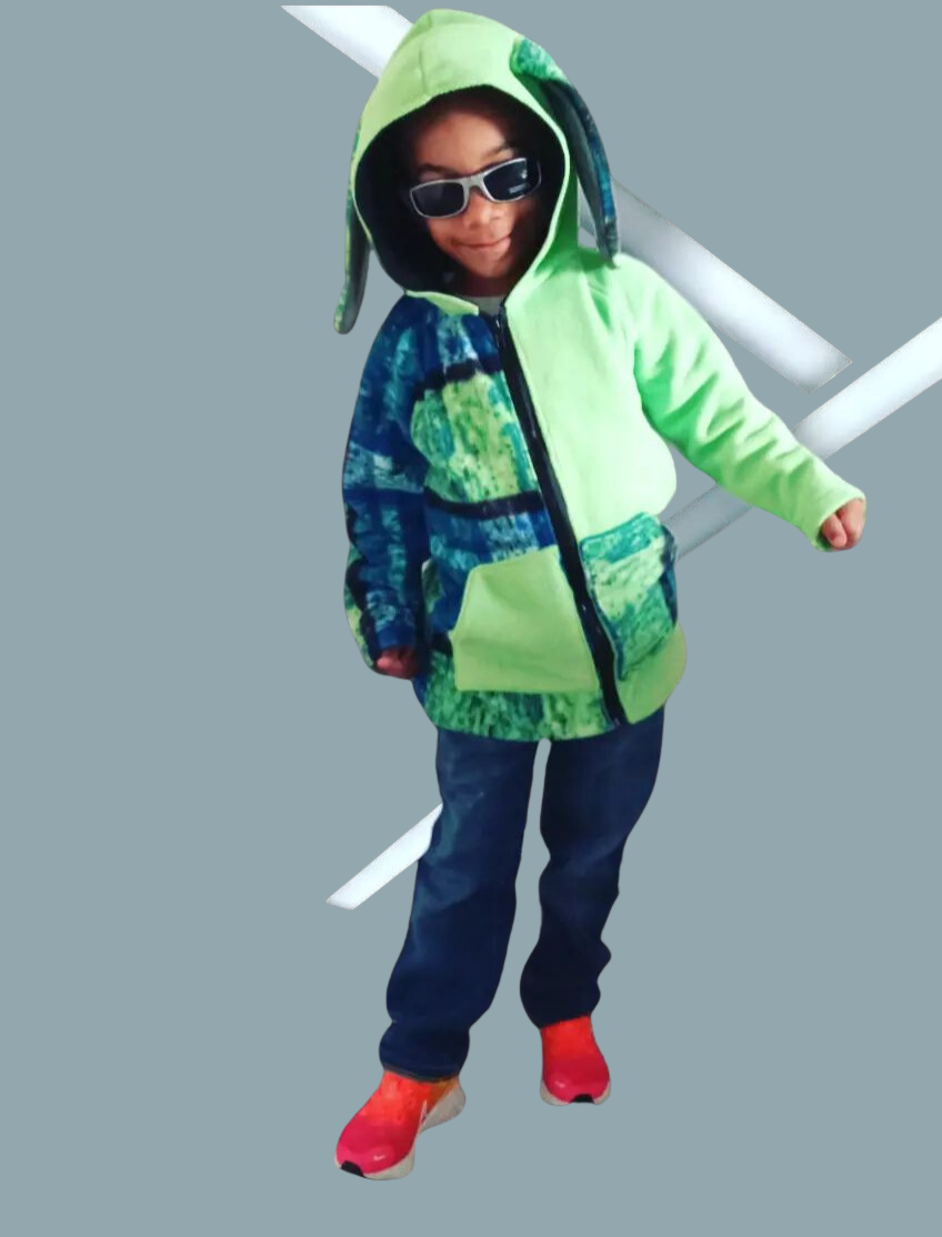 - Bright animal ears on hood, breezy, and children's favorite